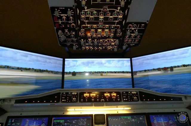 飛行模擬器視景系統,模擬飛機真實駕駛艙舷窗全視景,模擬飛行員所看到的座艙外部的景象,光照、大氣條件、聲效、地形地物等,從而使飛行員判斷出飛機的姿態、位置、高度、速度以及天氣等情況。